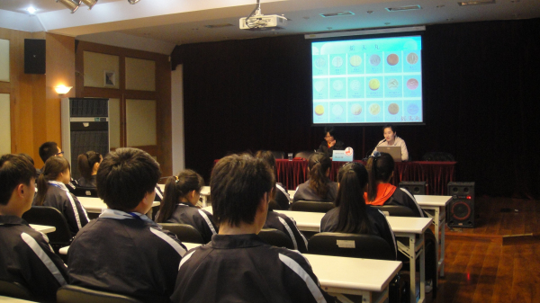 2012年4月13日,宣教员王以律在上海市环境学校主讲禁毒流动课堂,听讲人数1200人。