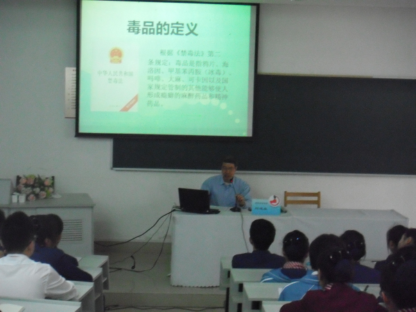 2012年4月16日,宣教部部长邓建业在上海市航空服务学校主讲禁毒流动课堂,听讲人数130人。
