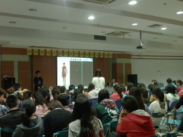 2012年4月25日,宣教员王以律在上海工会管理职业学院主讲禁毒流动课堂,听讲人数150人。