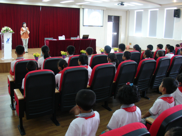 2012年9月28日,宣教员杨颖在闵行区浦行小学主讲禁毒流动课堂,听讲人数131人。