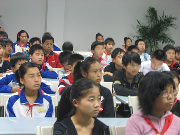 | 2009年10月28日,讲解员周颖在崇明县三星中学开展“毒品预防教育”禁毒流动课堂,听讲学生500人。 |