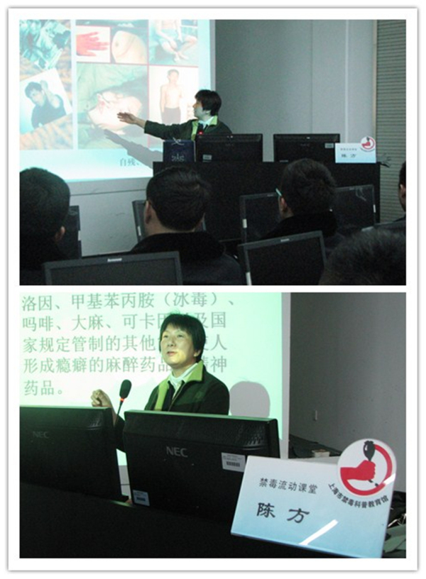 2013年3月5日下午,宣教员陈方在上海政法学院主讲禁毒流动课堂,听讲人数60人。